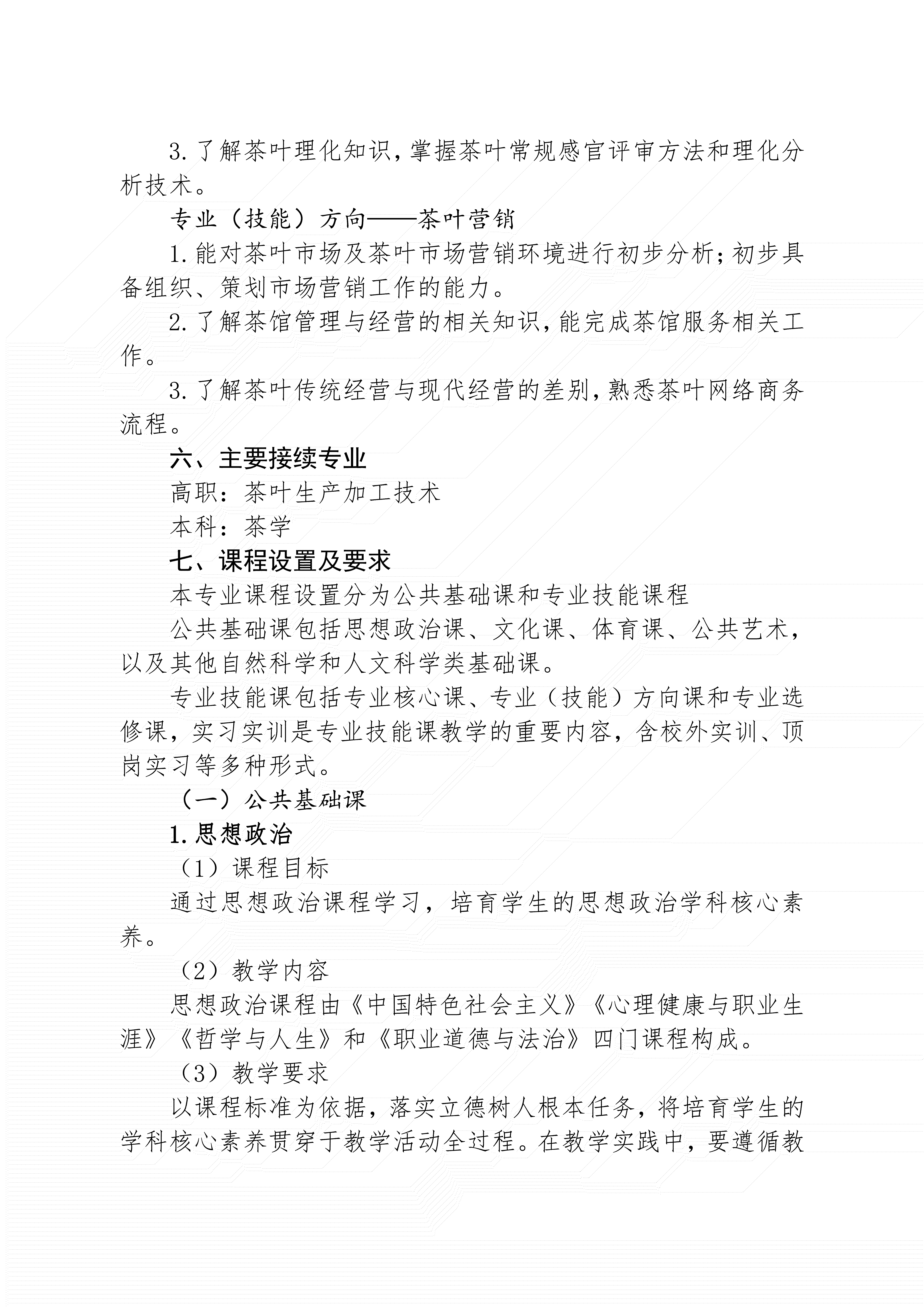 三明市农业学校茶叶生产与加工专业人才培养方案(2024)